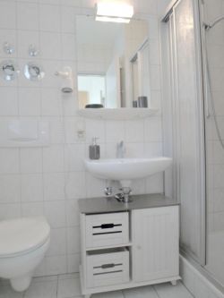 Die Besonderheit dieser Wohnung ist: sie liegt nur wenige Schritte vom Eingang des Wellness-Bereiches (Hallenbad mit Sauna und Dampfbad) und Solarium. Bademantel reicht.