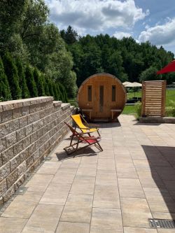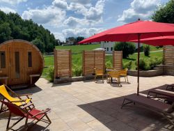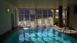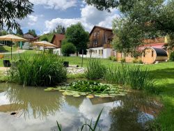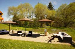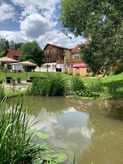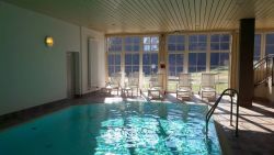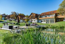Für erholsame Stunden steht Ihnen das Hallenbad mit Sauna, Solarium und Dampfdusche, sowie im Freien ein Kneipbecken und ein idyllischer Teich mit Liegewiese zur Verfügung.